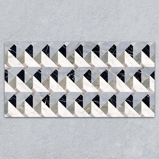 View full detailsBassano Diamond Tips is a bold marble effect décor tile defined by precision, contrast and movement. The design features a repeating diamond-tippe...