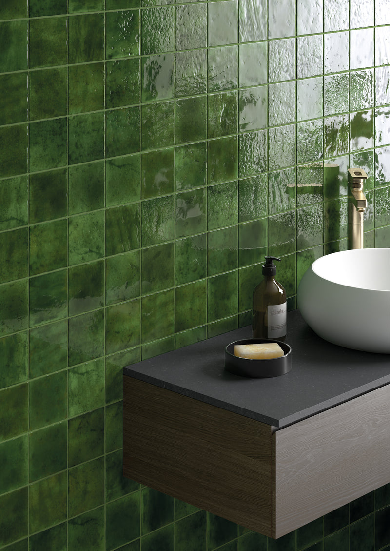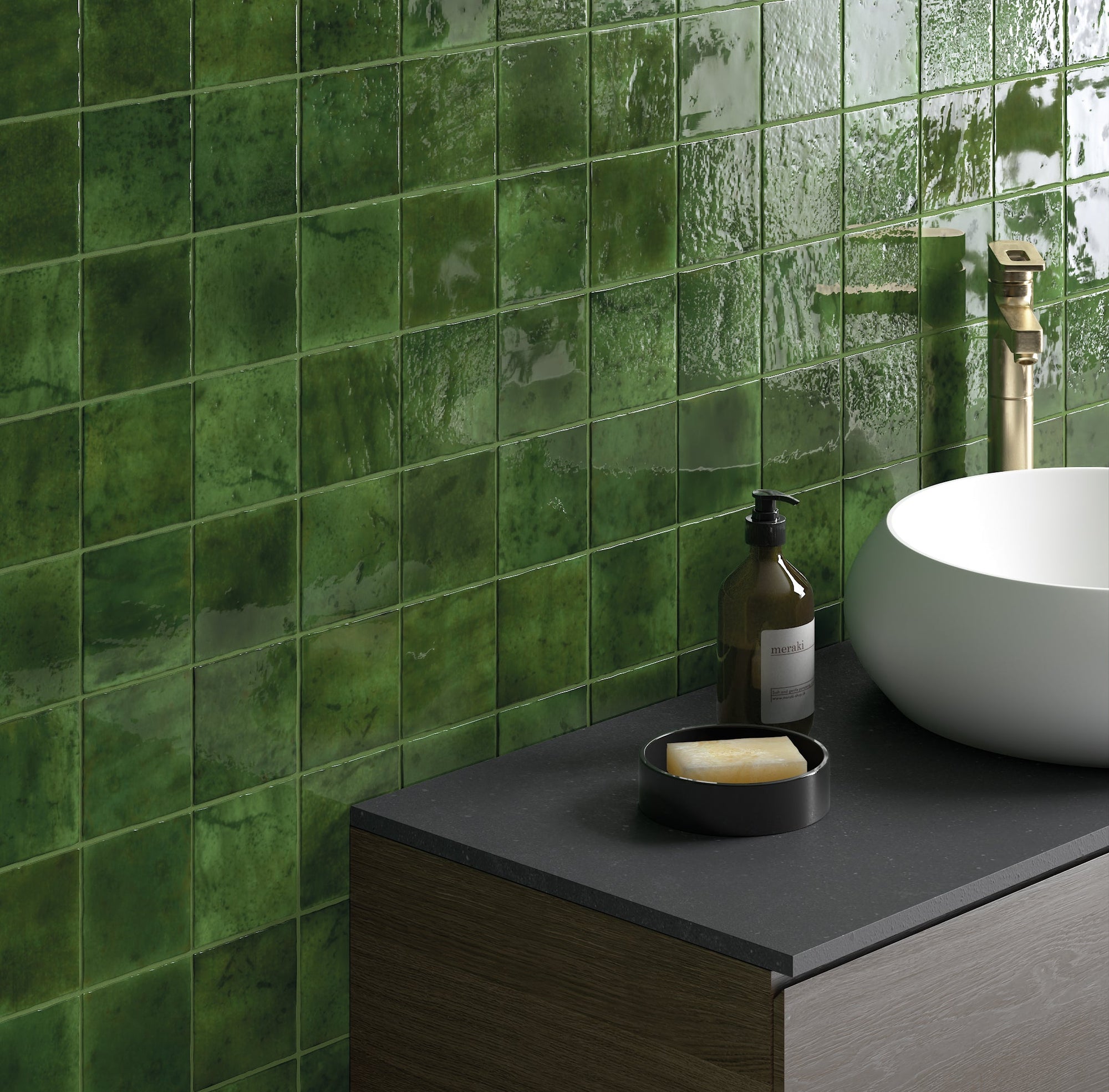 View full detailsMalaga Tourmaline Green Brick tiles bring depth, richness and artisanal character to interior walls. Finished in a deep green tone with natural ton...