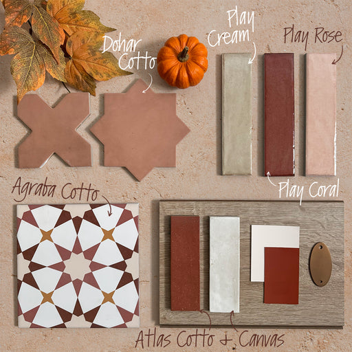 Agraba Cotto brings a warm, autumnal twist to classic Moroccan design. Featuring a vibrant medley of deep red, soft pink, and burnt orange tones, t...