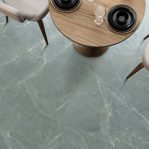 Bassano Sea Green in a matt finish offers a calmer, more understated interpretation of the collection’s signature green marble effect. The surface...