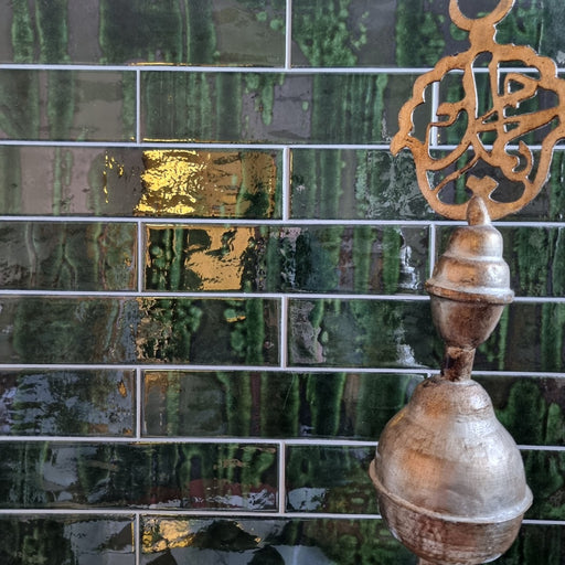 Molten Metallic Emerald Green Moroccan Wall Tiles 7.4cm x 29.7cm