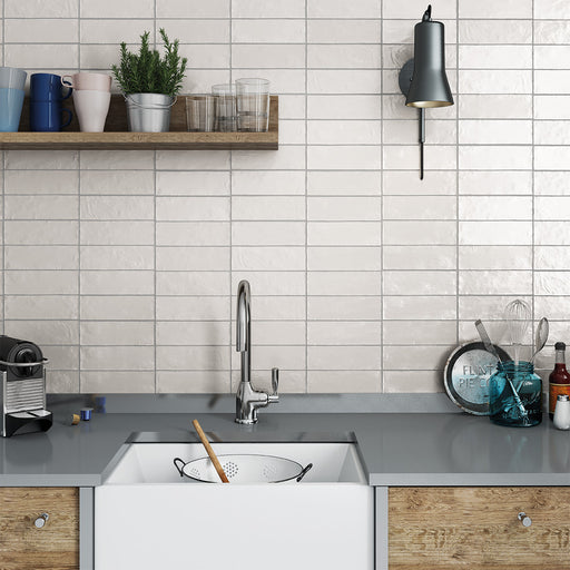 Zellij White Gloss Brick brings a timeless brightness to the Moroccan-inspired Zellij Collection. Each 6.5×20cm tile is coated in a soft glossy gla...