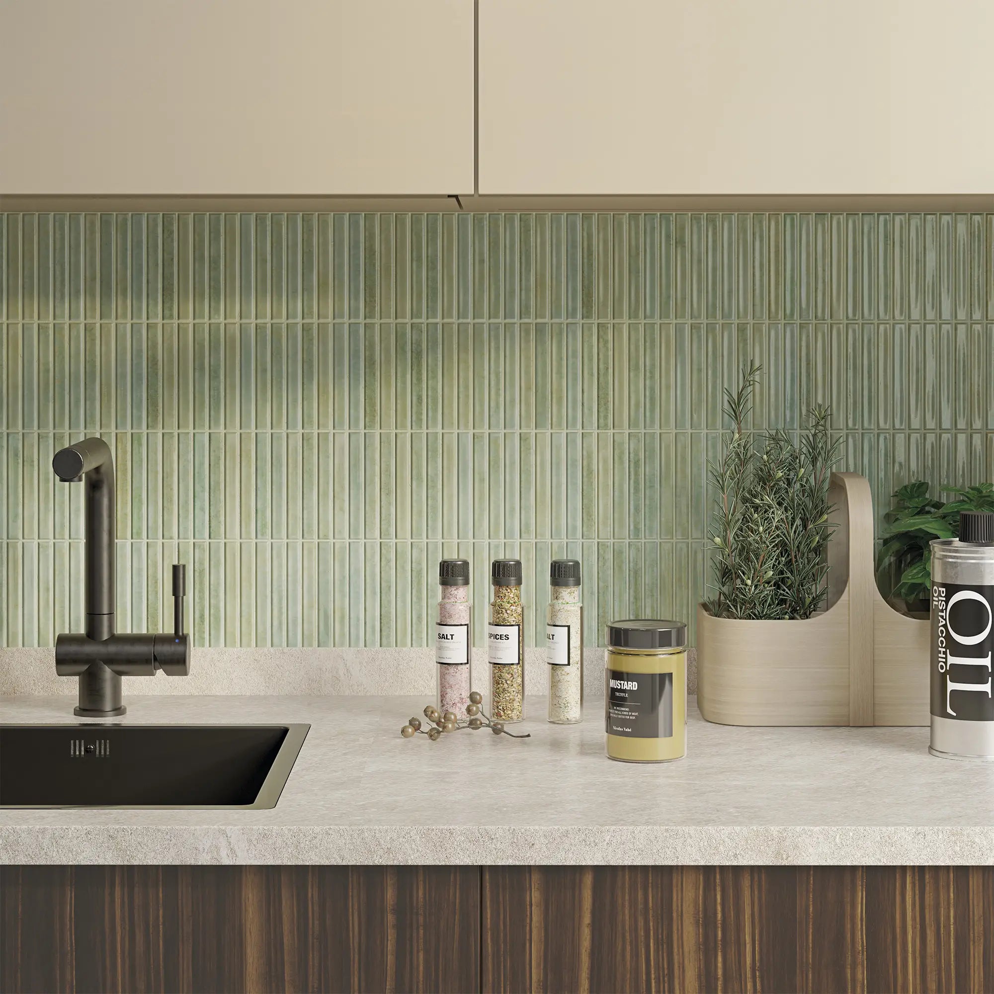 Discover our stunning Elazar collection —where playful imperfection steals the show. Each wall tile blends rustic charm with a contemporary edge, featuring a captivating glaze that dances across its surface. Each piece is a handcrafted gem celebrating those beautifully irregular edges that make it authentically yours. Irregular doesn't mean flawed; it means full of character. Available in several beautiful colours, these tiles come in a brick and a complementary 3d bars decor tile.  Transform your walls with tiles that prove true perfection lives in the delightfully imperfect.